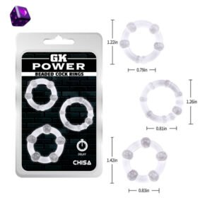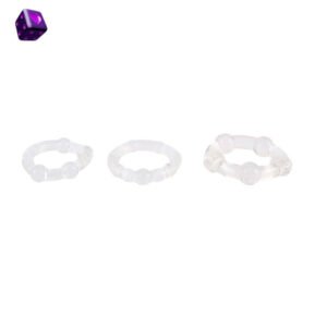 Disfruta de una experiencia más intensa con el pack de Beaded Cock Rings transparentes, diseñados con relieves estimulantes para potenciar el placer y mejorar la resistencia. Este set incluye 3 anillos de TPE en tamaños variados:
