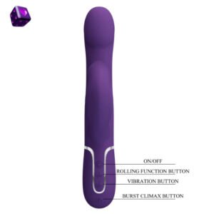 Rabbit con doble motor, perlas rotativas internas, 7 modos de vibración y botón clímax para una experiencia intensa y placentera.