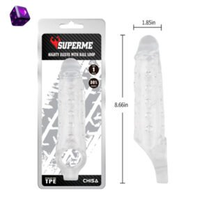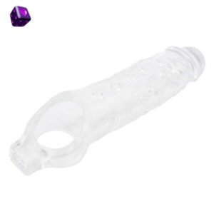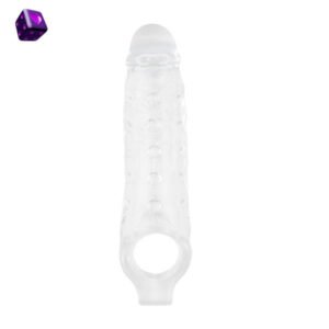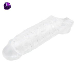 Funda transparente con textura interna y aro para testículos. Suave, elástica y segura para el cuerpo. Estimulación intensa y sujeción extra.